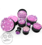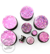 Black PVD Stainless Steel Plugs With Pink Druzy Inlay