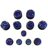 Beautiful purple druzy stone plugs! These are made from black titanium anodize on 316L stainless steel and have externally threaded screw on backs. Choose your size from 2G (6mm) - 1 inch (25mm). Synthetic purple druzy stone. Each piece will be unique in color and pattern. Sold in pairs.
