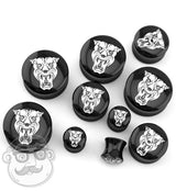 Sold in pairs Traditional panther logo Double flares Acrylic Pick from 0G - 1 & 1/4" Wearable surface: 10mm