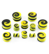 Sold in pairs Black & Yellow swirl design Double Flares Each piece is unique We do our best to provide you a matching pair 2G - 3/4"