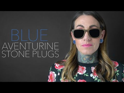 Handmade with natural blue aventurine stone, our plugs come in a range of sizes from 8G (3mm) to 1 & 1/2" (38mm) in diameter. Each plug has a unique color and pattern, providing a one-of-a-kind look. With a double flare and flat sides, these plugs have a wearable area of 12mm to 13mm. Sold in pairs and meant for healed lobes.