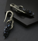 Blue Flame Petrified Palm Root Raven Claw White Brass Ear Weights