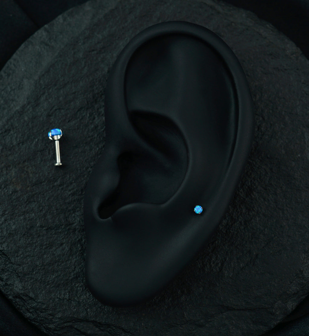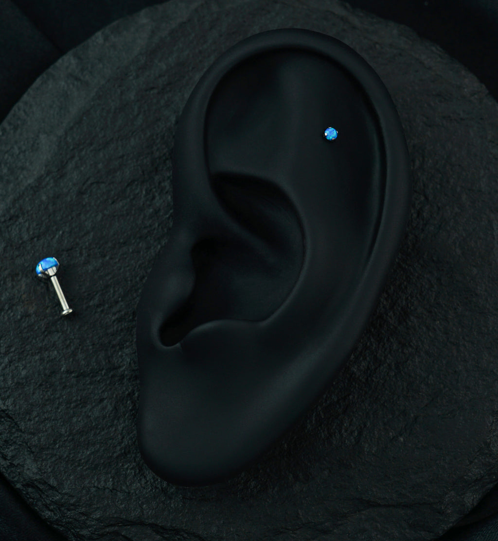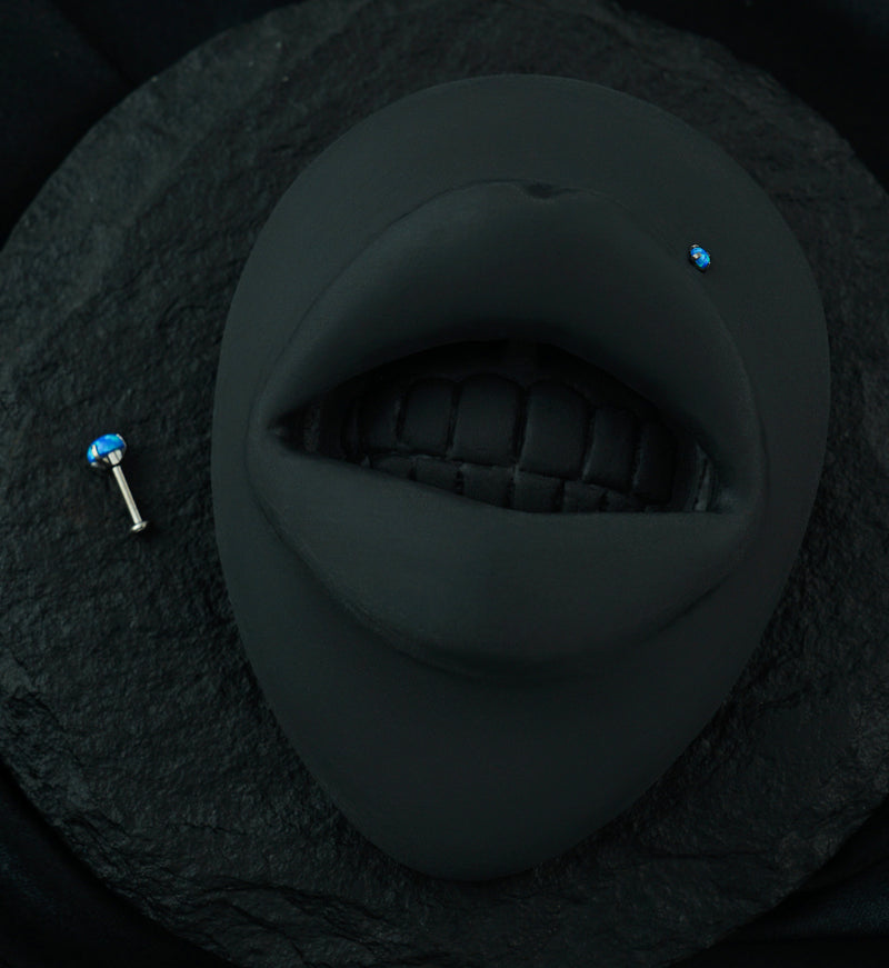 Add a splash of color with this Blue Opalite Prong Set Titanium Threadless Labret! Made from durable ASTM F136 titanium and featuring a vibrant synthetic blue opalite stone, it’s perfect for a variety of piercings. Available in 20G and 16G sizes with a 1/4" (6mm) inner length, this threadless design ensures easy, secure wear. Sold individually and includes a 25G pin for hassle-free insertion.