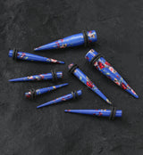 Blue tapers with a rose pattern. Great option to have in your collection. Available in sizes 6G (4mm) - 00G (10mm). Acrylic. Comes with two black " O" rings. Sold individually (1pc). For a pair, mark quantity to 2.