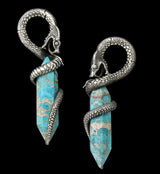 Blue Sea Sediment Stone Cobra White Brass Hinged Ear Weights