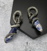Blue Sodalite Stone Cobra White Brass Hinged Ear Weights