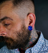 Polished glass plugs that have a swirling, blue and white design. Fun pair to add to your plug collection! These plugs have double flares with a convex front and flat back. The back is also patterned. Handcrafted and polished. Pick your size from 2G (6mm) - 1 & 1/4" (32mm). Wearable area for 2G (6mm) - 7/8" (22mm) is 8mm and full length is 14mm. Wearable area for 1" (25mm) - 1 & 1/4" (32mm) is 8mm with a full length of 16mm. Convex front flare measures about 4-5mm and the back measures about 2mm-3mm. Measurements are subject to a +/- 1mm difference as these are handcrafted. Each plug is unique in color and design due to the nature of the glass and swirl design. We will do our best to find you a matching pair. Sold in pairs (2pcs).