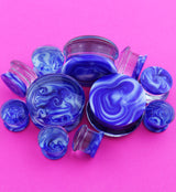 Blue/White Chroma Swirl Glass Double Flare Plugs