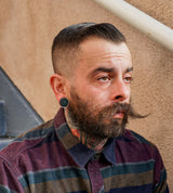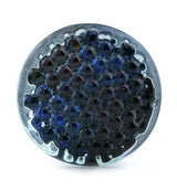 Glass plugs that have a sponge-like, multi-hammered design and blue/purple color. Awesome pair to add to your plug collection! These plugs have double flares with a convex front and flat back. Handcrafted and polished. Pick your size from 2G (6mm) - 1 & 1/4" (32mm). Wearable area for 2G (6mm) - 7/8" (22mm) is 8mm and full length is 14mm. Wearable area for 1" (25mm) - 1 & 1/4" (32mm) is 8mm with a full length of 16mm. Measurements are subject to a +/- 1mm difference as these are handcrafted. Each plug is unique in color and design due to the nature of the glass and design. We will do our best to find you a matching pair. Sold in pairs (2pc).