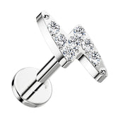 Sparkling lightning bolt piece to add to your tragus or cartilage jewelry collection! This piece is made from ASTM F-136 titanium and has an easy, threadless design. Filled with clear cz gems! Choose your size between 16G and 18G. Both have a 5/16" (8mm) length. Sold individually (1pc).
