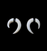 Organic fake gauge tapers made from bone with a durable ASTM F-136 titanium 18G wire. The ends are made from white brass cross over each other. Shaped into a hook design. Sold in pairs (2 pcs).