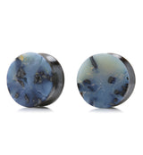 Boulder opal stone plugs! These plugs are natural and handcrafted with marble-like, opal designs throughout. This pair you see here is what you will get when you purchase. This is version 1 of 4 in this 3/4" size. Size is 3/4" (19mm). Wearable area is 8mm. Full length is about 9mm-10mm. Handle with care. Sold in pairs (2 pieces). For healed lobes.