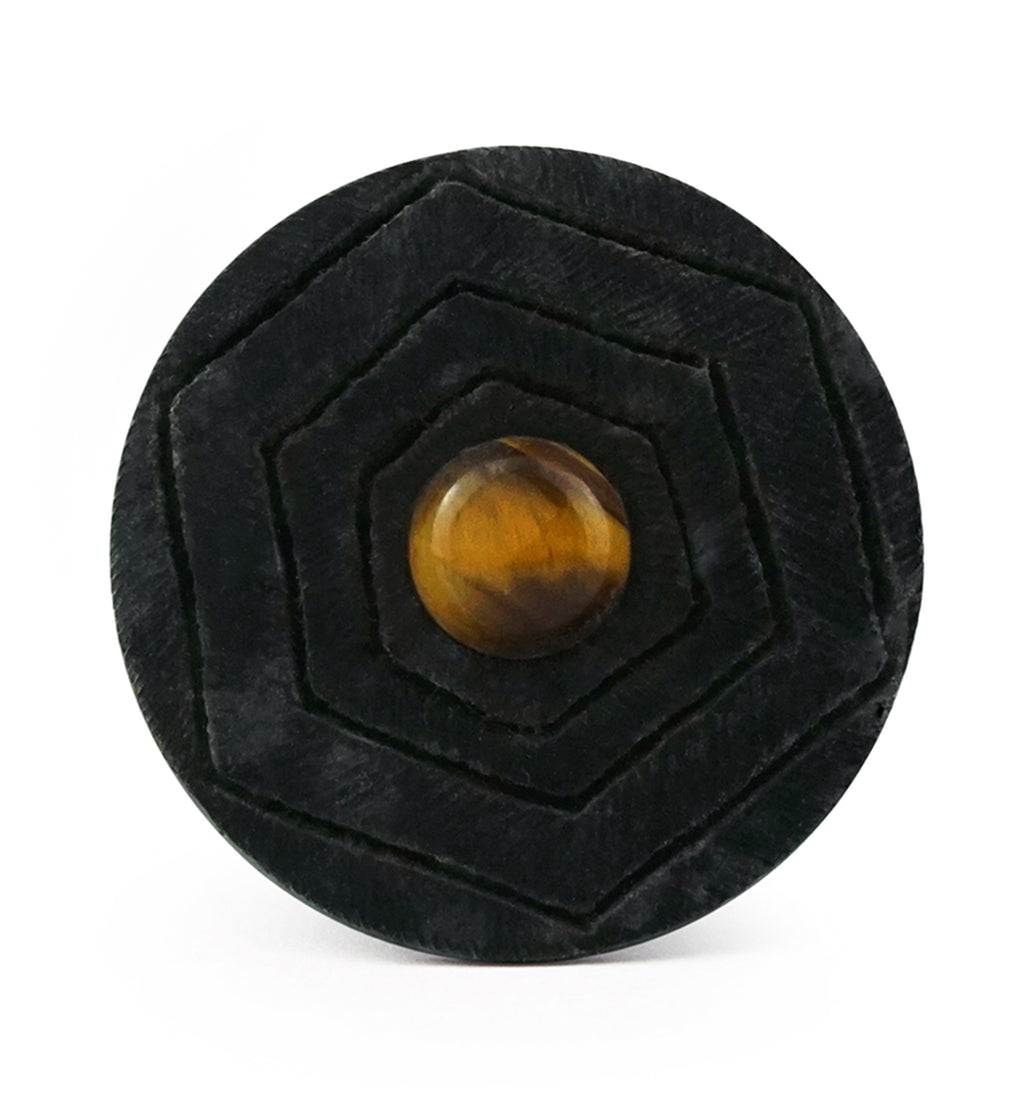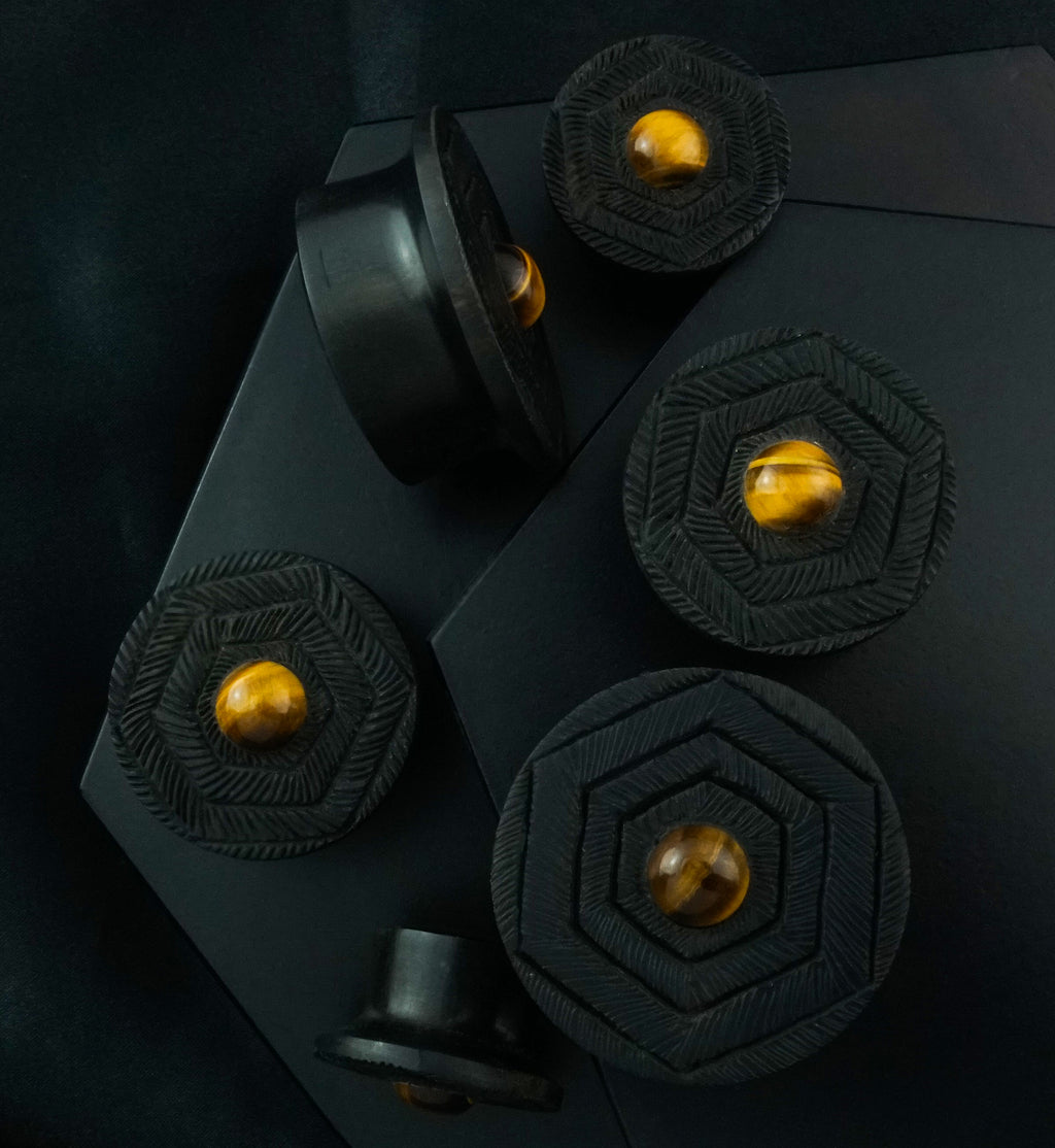 Boundary Geo Tiger Eye Stone Inlay Areng Wood Mayan Flare Plugs