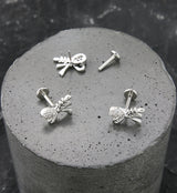 Threadless labret that consists of a cute, tied bow design that is filled with sparkling pave clear cz gems and a leaf accent. Made from 316L stainless steel. Size is 18G with a 1/4" (6mm) length. 4mm flat back. Top design measures at 10mm x 7mm. Sold individually (1pc).