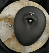 This belly button has a bow design that is filled with clear cz gems. Attached is a dangling, clear cz gem. It is made from strong ASTM F-136 titanium and is threadless with a 25G pin. The threadless design makes this piece easy to put in and remove from your piercing. Size is 14G with a 3/8" (10mm) wearable length. The bottom ball measures 5mm and the top design measures 8mm x 8mm. Sold individually.
