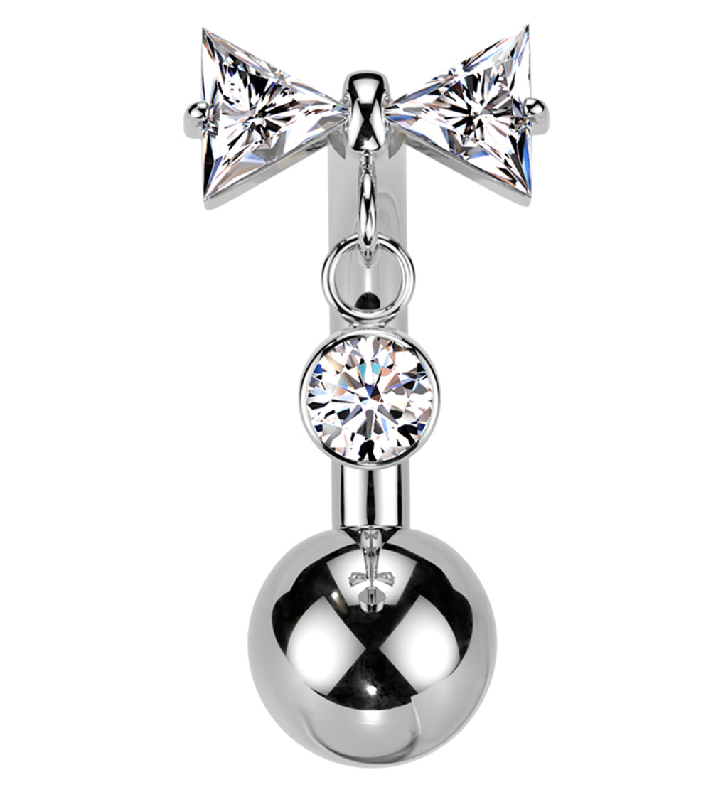 Bow Dangle Clear CZ Titanium Threadless Belly Button Ring