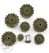 Sold in pairs (2pc) Single Flare - Screw on backs 316L stainless steel Full Length:10mm X Wearable area: 6mm Brass camellia flower design Pick from 2G - 5/8"