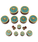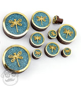 Brass Dragonfly Wood Plugs With Teal Stone Inlay