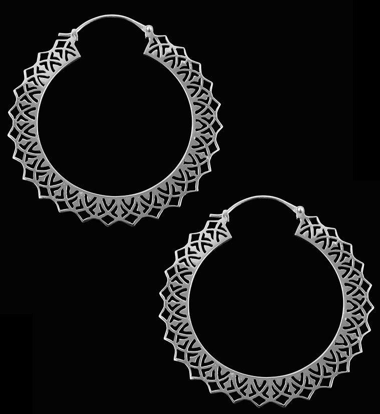 Sold in pairs (2pc) Size: 16 gauge Weight: 11 grams each Size: Height - 70mm X Width - 65mm Sterling silver clasp Double sided Silver is not meant for long term wear May oxidize under extreme moisture conditions