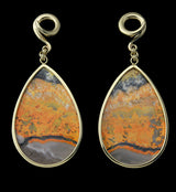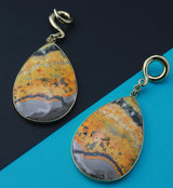 Bumblebee Jasper Stone Teardrop Brass Ear Weights