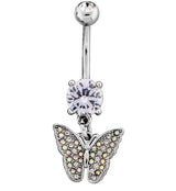 Butterfly Rainbow Aurora CZ Stainless Steel Belly Button Ring