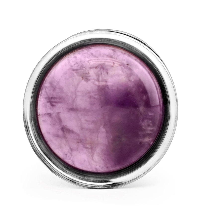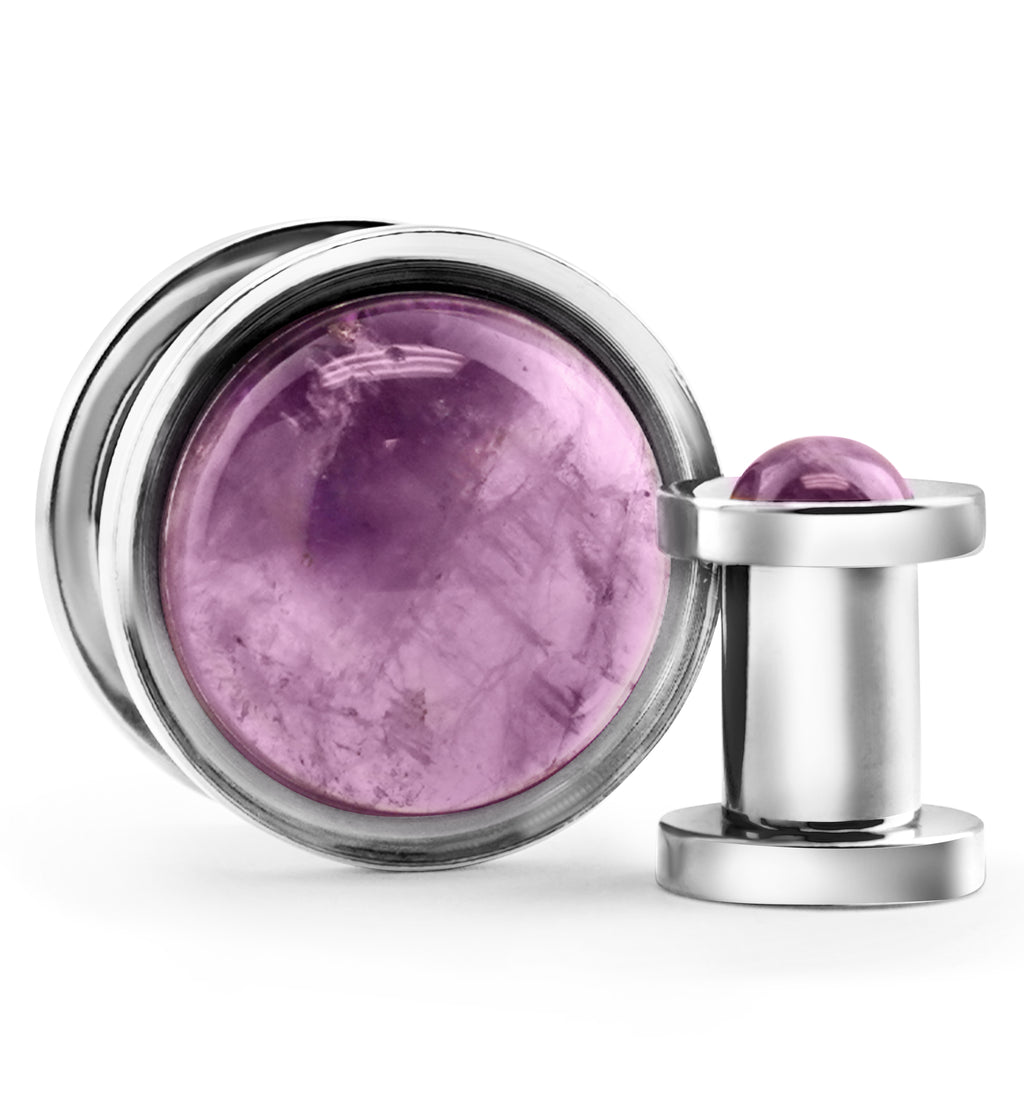 Cabochon Amethyst Stainless Steel Screw Back Tunnel Plugs