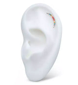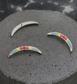 Internally threaded top piece that has a curved design that is filled with rainbow cz gems. Colors include: red, orange, pale yellow, light green, aqua, amethyst. Made from ASTM F-136 titanium. Measures about 16.3mm x 4.5mm. Size is 16G with M0.9 threading. Sold individually (top piece only).