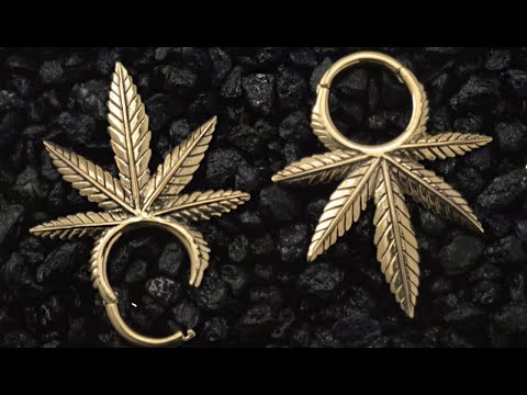 Discover a unique addition to your ear jewelry collection with our Cannabis Hinged Brass Ear Weights! Handcrafted with fine detail, these weights feature a hinged design for easy opening and closure. Each pair (2pcs) is approximately 48mm in height and 40mm in width, and weighs 11 grams each. Perfect for 6G (4mm) piercings, these weights are sure to make a statement.