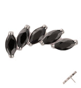 Sleek, threadless top piece created with multiple black marquise cz gems in a curved design. This piece is made from durable ASTM F136 titanium. Top size is about 12.5mm x 5.5mm. Pin length is 5mm and it fits most threadless posts. Sold individually (top only).