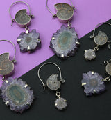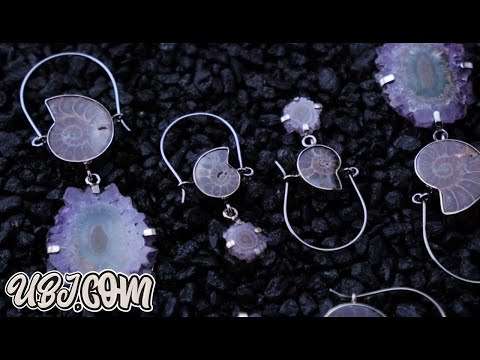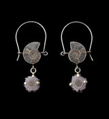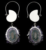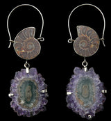 Natural ammonite and stalactite titanium hangers. Beautifully designed with natural ammonite fossil and stalactite mineral. Made from brass & titanium with an ASTM f-136 titanium clasp. 18G. Choose your size: Mini, S, M, L. All lengths are approximate depending on the item due to hand made status! Sold in pairs (2 pcs).