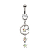 Celeste Triple Dangle Star Rainbow Aurora CZ Stainless Steel Belly Button Ring