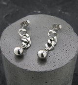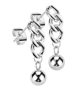 Stud earrings with a chain link design that has a 6mm ball at the end. Made from 316L stainless steel. Size is 20G. Overall length is about 25mm. Butterfly backs. Sold in pairs (2 pieces).