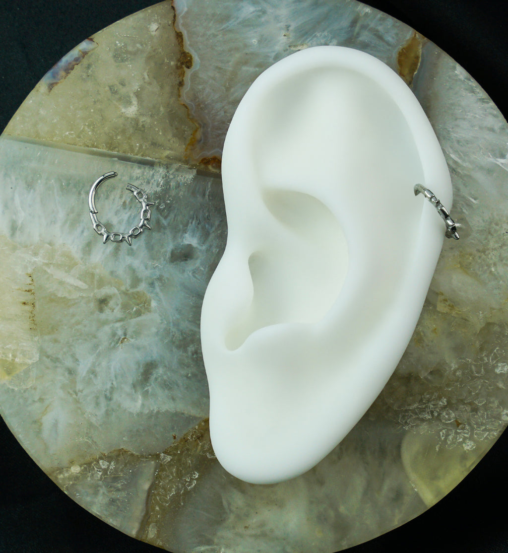 This 16G ring is sold individually and features a chain link design that is accented with spikes throughout. It also has a hinged design for effortless opening and closing. Made of 316L stainless steel, it's perfect for septum piercings and provides a nice fit with inner diameter sizes of 5/16" (8mm).
