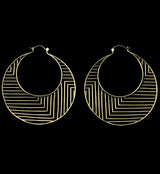 Hangers/earrings made from brass with an intricate design. ASTM f-136 titanium clasp. Size is 18G with approximate dimensions of 80mm x 70mm. These are sold in pairs (2pcs). For healed piercings/lobes.