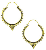 Beaded hoop earrings that are made from brass and have a point at the bottom. They are size 18G (1mm) so must be 18G or bigger to wear. Brass is not meant for long term wear as it may oxidize under extreme moisture conditions. These have a hinged design that opens and clicks closed easily. Full size measures about 60mm x 45mm and they weigh about 5.7 grams each. For healed lobes. Sold in pairs (2pcs).