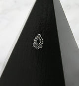 Threadless top piece made up of a black teardrop cz gem and four round black cz gems with a beaded accent. This piece is made from ASTM F136 titanium. Approximately 7mm length. Pin length is 5mm. Sold individually.