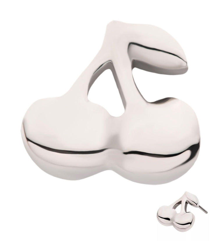 Threadless top piece that is shaped like cherries. Made from ASTM F-136 titanium. Measures about 6mm x 5.5mm. Fits most threadless posts. Sold individually (top piece only).