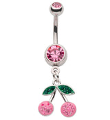 Cherry Pink CZ Dangle Stainless Steel Belly Button Ring