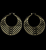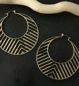 Brass hangers with classic lined design in a triangle shape. ASTM f-136 titanium clasp. Size is 18G with approximate dimensions of 80mm x 70mm. These are sold in pairs (2pcs).