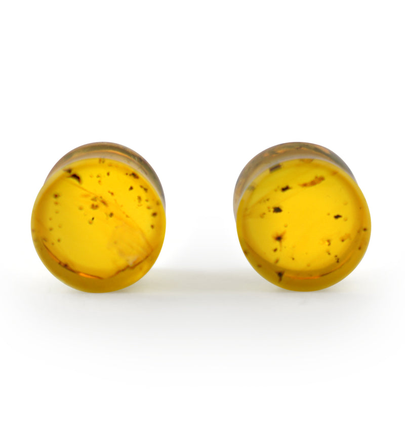 This fun pair is handmade from amazing chiapas amber, with a double flare for healed piercings. These unique plugs measure about 11.5mm in length and this is the exact pair you will receive. Fragile - handle with care.