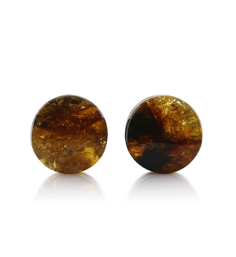 These Chiapas Amber Plugs are sold in a pair, and are perfect for healed piercings. Made from delicate Chiapas amber, each plug has a double flare and a wearable area of 11mm. Please handle with care. Each piece is unique in color and pattern and even size. Available in a size of 1/2" (12mm), with slight variations of +- 0.5mm. Notice: This is the exact pair you will receive.