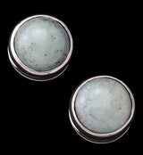 Natural stone ear weights made from white brass and chrysoprase stone. Each piece will be unique in design and color. They weigh approximately 14 grams each. Must have 3/4" (19mm) stretched ears or bigger to wear. Brass is not meant for long term wear - it may oxidize under extreme moisture conditions. Sold in pairs. For healed lobes/piercings.