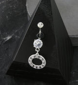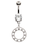 Circle CZ Frame Dangle Stainless Steel Belly Button Ring