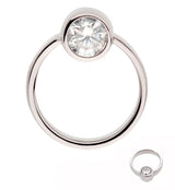 Internally threaded top piece that is has a circular ring with a clear cz gem on the top. Gem size: 2.5mm. Made from ASTM F-136 titanium. Measures about 8mm x 7mm. Size is 16G. M0.9 threading. Sold individually (top piece only).