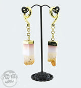 Sold in pairs (2pc) NOTICE: Pattern & color will be unique for each piece Citrine stone Appx 15 grams each piece 4G or bigger to wear Appx Width: 15mm Appx Height: 80mm Made from brass Brass is not meant for long term wear. May oxidize under extreme moisture conditions Free domestic shipping