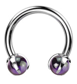 This high quality 16G titanium internally threaded circular barbell features 3mm, claw set amethyst stone balls. Constructed with ASTM F-136 titanium for a durable and lightweight piece, the inner diameter measures 3/8" (10mm). Perfect for septum piercings!
