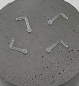 Flexible retainer option for your nose piercing! Clear acrylic nose ring retainer, topped with a 2mm ball. Choose between 18G and 20G. Length is 1/4" (6mm). For healed piercings. Sold individually (1pc).
