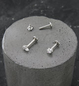 Clear Prong Oval CZ Stainless Steel Internally Threaded Labret
