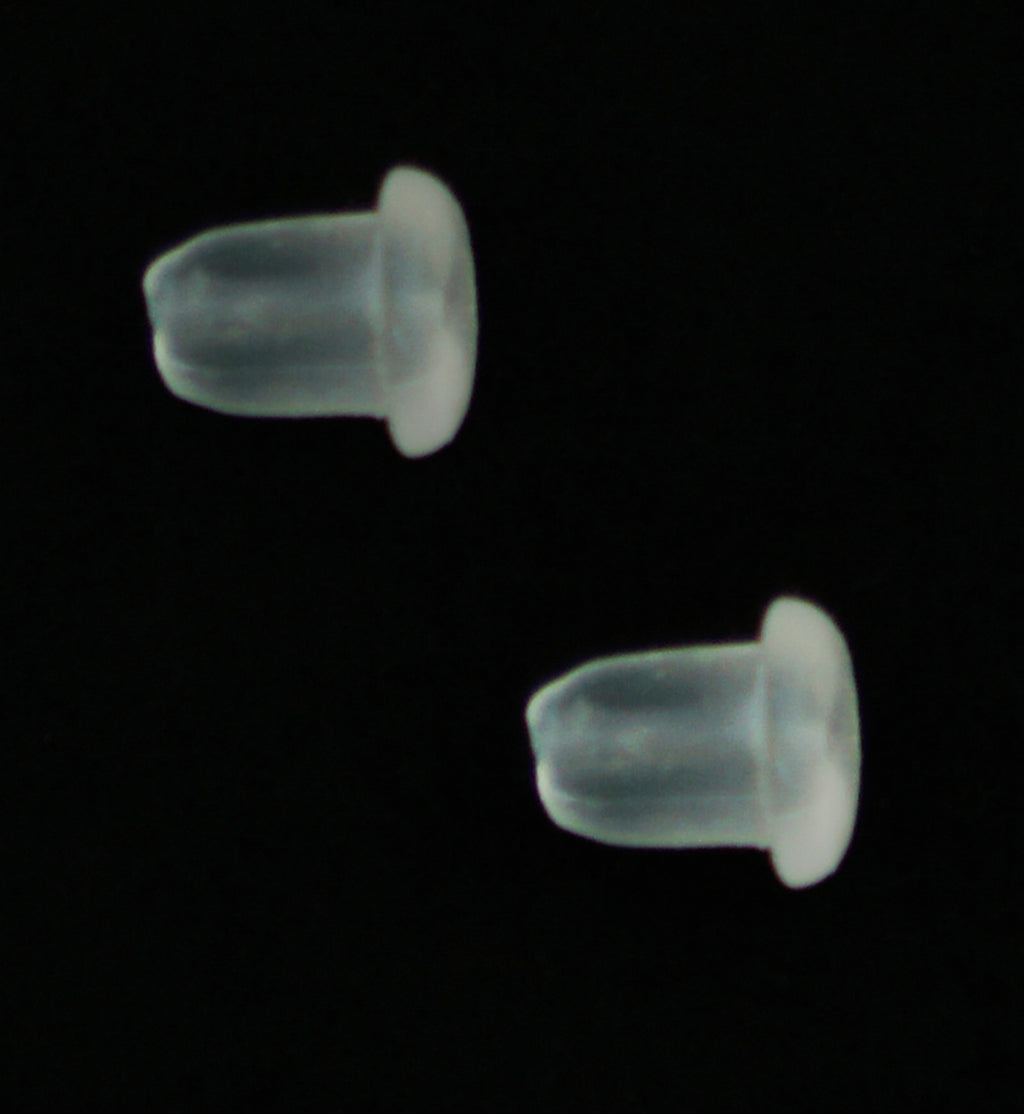 Replacement clear rubber earring backs. Fits 20G, 18G and 16G earring posts. Sold in pairs (2 pcs). For healed ear piercings.