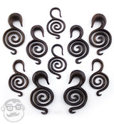 Handcrafted from Areng wood, our Coil Spiral Hangers feature a unique carved spiral design and are available in sizes ranging from 12G (2mm) to 1/2" (12mm). Sold in pairs, each plug is carefully made by hand with attention to detail, making each piece truly one-of-a-kind. Please note that due to the handmade nature, sizing may vary by +/- 1mm. Avoid direct sunlight and extreme moisture conditions for best results.